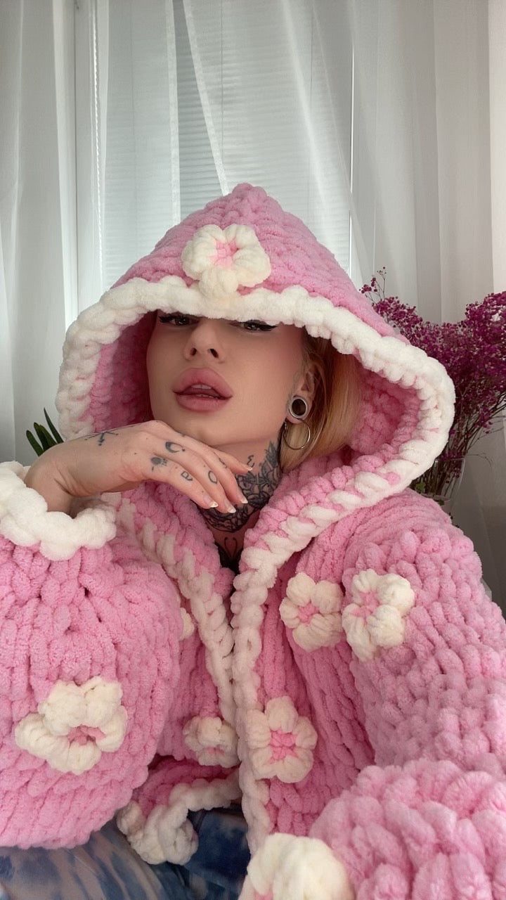 🌸 This pattern and video tutorial are for everyone who wants to create their own cozy and stylish puffy cardigan with flowers. 🎀